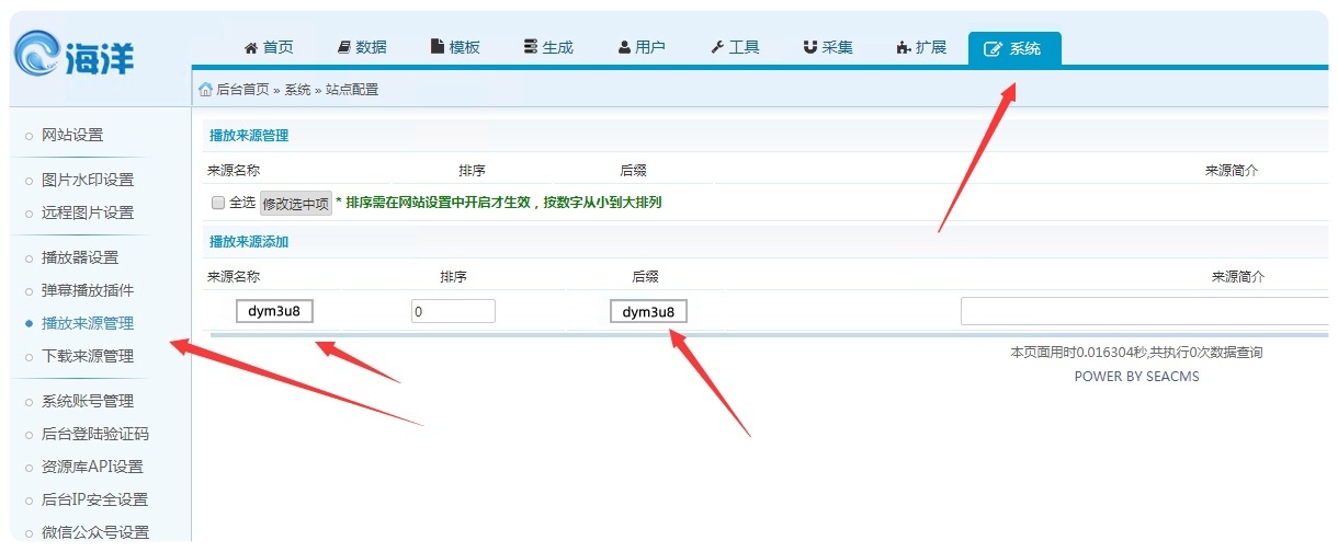 然后依次输入来源名称:dym3u8 后缀:dym3u8